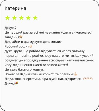 - фідбек та підтримка Людмили (згідно обраного тарифу)